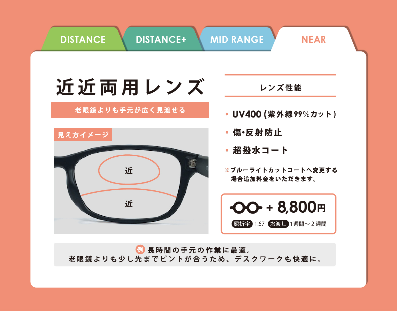 読書・料理・細かい作業など、近距離が多い方に。